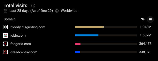 MORE THAN JUST HORROR NEWSReach dedicated horror fans across a wide network of content including native editorial, social media, podcasts, original video content, and custom integrations.Let us work with you to put together the perfect custom package.